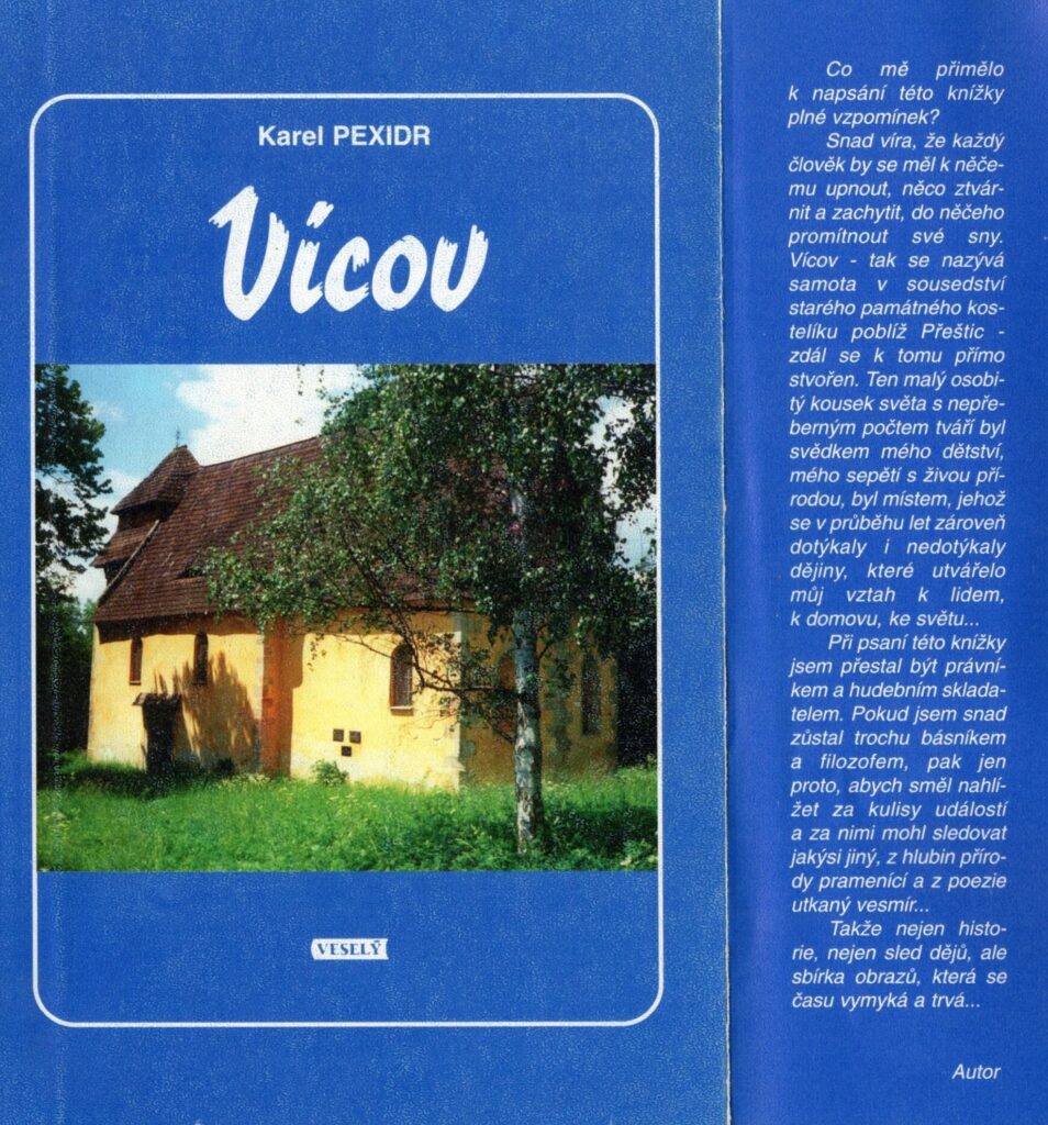 „Byla to jen malá, mizivá píď vesmíru – ostatně, co je člověk jiného – ale pro mne to byl vesmír sám. Vesmír ne předem známý, ale objevovaný a tvořený. Měl jméno Vícov.“